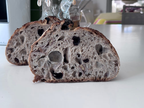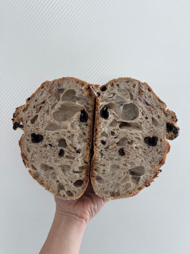 Cherries and walnuts is this week’s exclusive bake. A beautiful loa balancing the sweet and sour cherry flavor with the nuttiness from the walnuts! A bread with a slightly denser crumb- due to the inclusions but rich in flavor!! A special loaf! Makes beautiful sandwiches and the best toasts!!