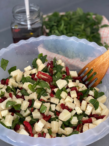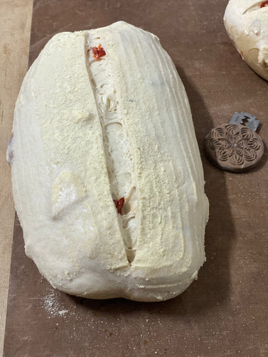The smell and taste of home! Homemade sun dried cherry tomatoes paired with lots of mint and chopped fresh haloumi. A classic beautiful combo for a delicious savory loaf!