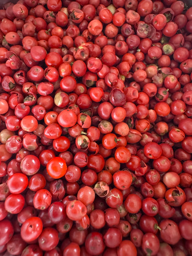 They burst with a sweet peppery flavor (not spicy, not hot but pleasingly flavorful and strong). The prunes are the balance of sweetness to the pink pepper and they are, to me, the obvious combination.